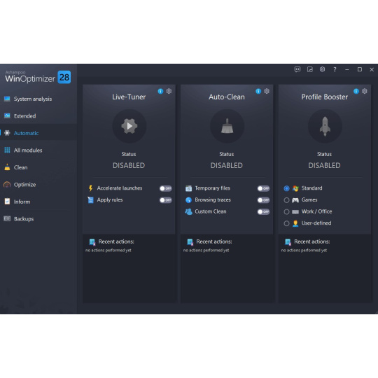 S novým programem Ashampoo WinOptimizer 28 získáte automaticky nejlepší zážitek z práce s Windows. Jeho nová automatizace zrychluje, čistí a ladí vaše aplikace. Nechte svůj počítač plynule přizpůsobit vašim potřebám pomocí prioritizace procesů, automatického čištění dočasných souborů a vlastních konfigurací profilů na základě nového nástroje Profile Booster. Ať už jde o hraní her, práci nebo prohlížení webu, maximalizujte výkon systému nebo šetřete prostředky, volba je na vás. Nový nástroj Crash Analyzer nabízí hluboký pohled na pády systému a jejich příčiny, zatímco čtyři pokročilé čističe zajišťují soukromí a poskytují údržbu systému. Díky vylepšené správě paměti dokáže nyní WinOptimizer využít více prostředků k provádění komplexních analýz téměř okamžitě!