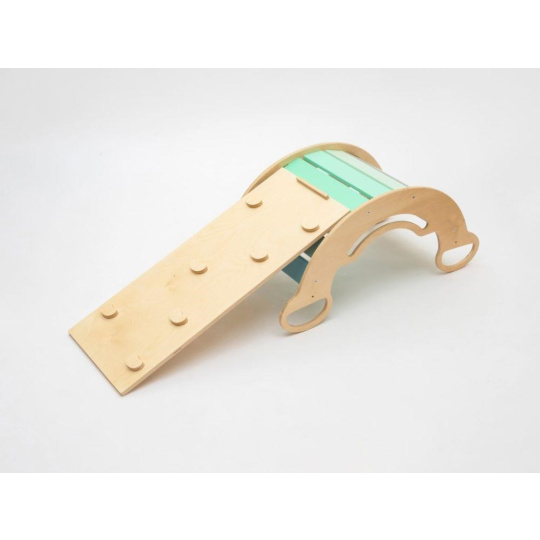 Kvalitní dřevěné oboustranné prkno (pouze k houpačce SMILE) má všestranné využití. Z jedné strany zábavná skluzavka, po které se děti sklouznou třeba na měkkou žíněnku, na druhé straně lezecká deska s úchyty, která rozvíjí pohybové dovednosti vaší holčičky i chlapce. Oboustranná deska je doplňkem k Montessori houpačce SMILE. Položená na boční hraně houpačky smile vytvoří dětem praktický stoleček ke svačince i k malování. Oboustranné prkno není možné používat s Montessori houpačkami 5in1 ELIS DESIGN. Prkno je širší než naše duhové a dřevěné houpačky. PRKNO JE DOPLŇKEM POUZE K MONTESSORI HOUPAČKÁM SMILE, kterou promění v dětský stoleček..