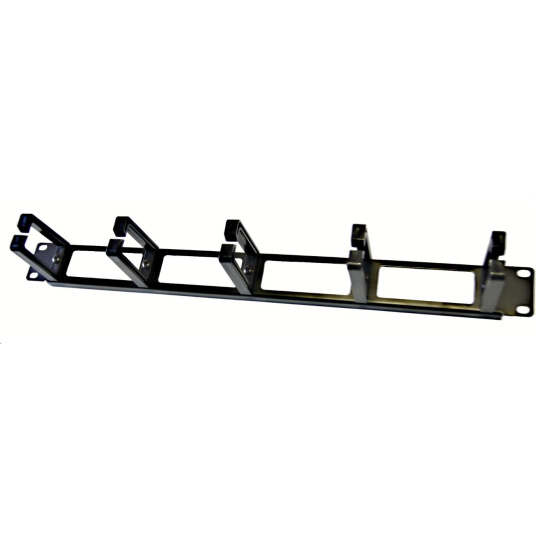 19" vyvazovací panel 1U, 5x plastový úchyt 40x60mm, průchozí, černý