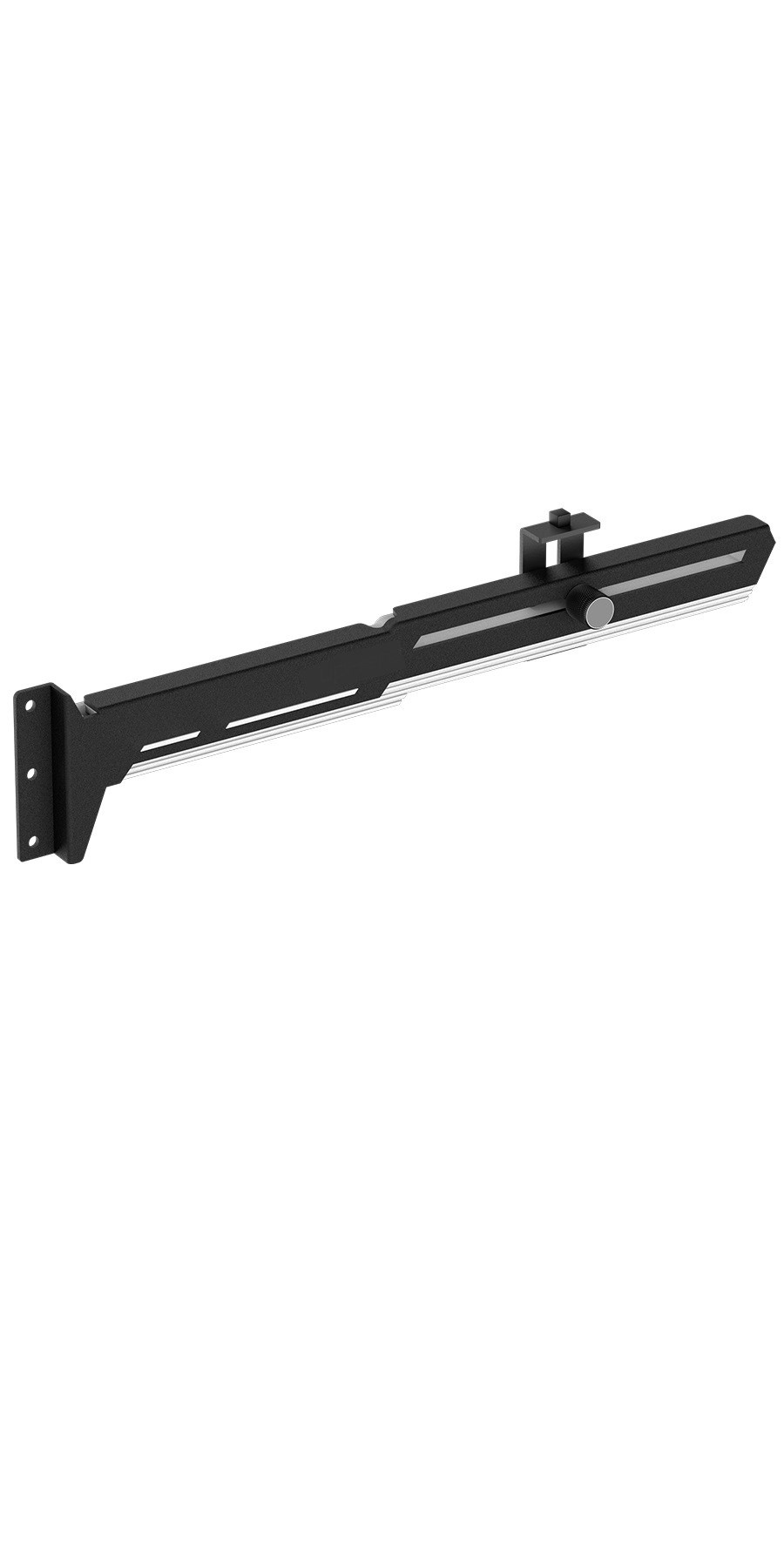 Stylová varianta této opory Vaší grafické karty je vyrobena z ocelového práškově lakovaného plechu a plastu, zabraňuje prohýbání větších karet ve slotu a dodává tak sestavě lepší celkovou stabilitu. Součástí je silikonová posuvná opora, kterou lze posunout jak horizontálně tak i vertikálně a umožňuje instalaci v různých místech karty, pro maximální kompatibilitu s většinou karet. Rozměry držáku jsou 280 x 52mm.