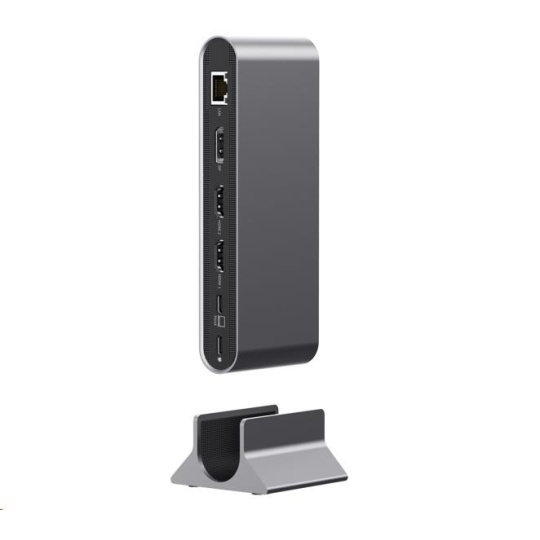 Je vybaven vysokorychlostním USB, čtečkami karet SD/microSD, video výstupem s rozlišením 8K, gigabitovým Ethernetem a kombinovaným audio konektorem, stačí připojit napájecí adaptér USB-C a rychle se nabíjí.