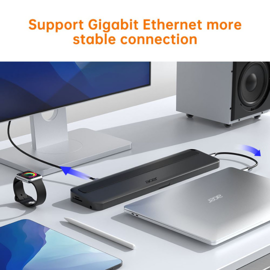ACER 13in1 Type C Minidock: 3*USB3; 1*USB C; SD/TF; 2*HDMI; DP; RJ45; USB C; 3.5mm Audio