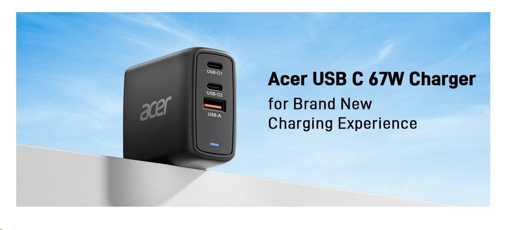 ACER Adapter 67W PD GaN charger,USB-C,USB-A,EU plug,Black