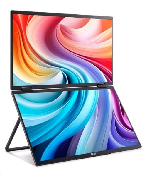 ACER LCD PD163Qbmiuux DUAL SCREEN 40cm (15.6") IPS LED, FHD 1920x1080@60Hz, 250cd/m2, 170/170, 2x2W repro, Black