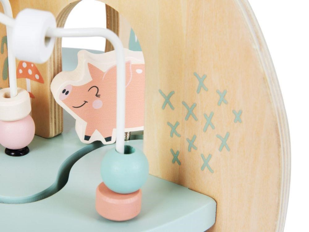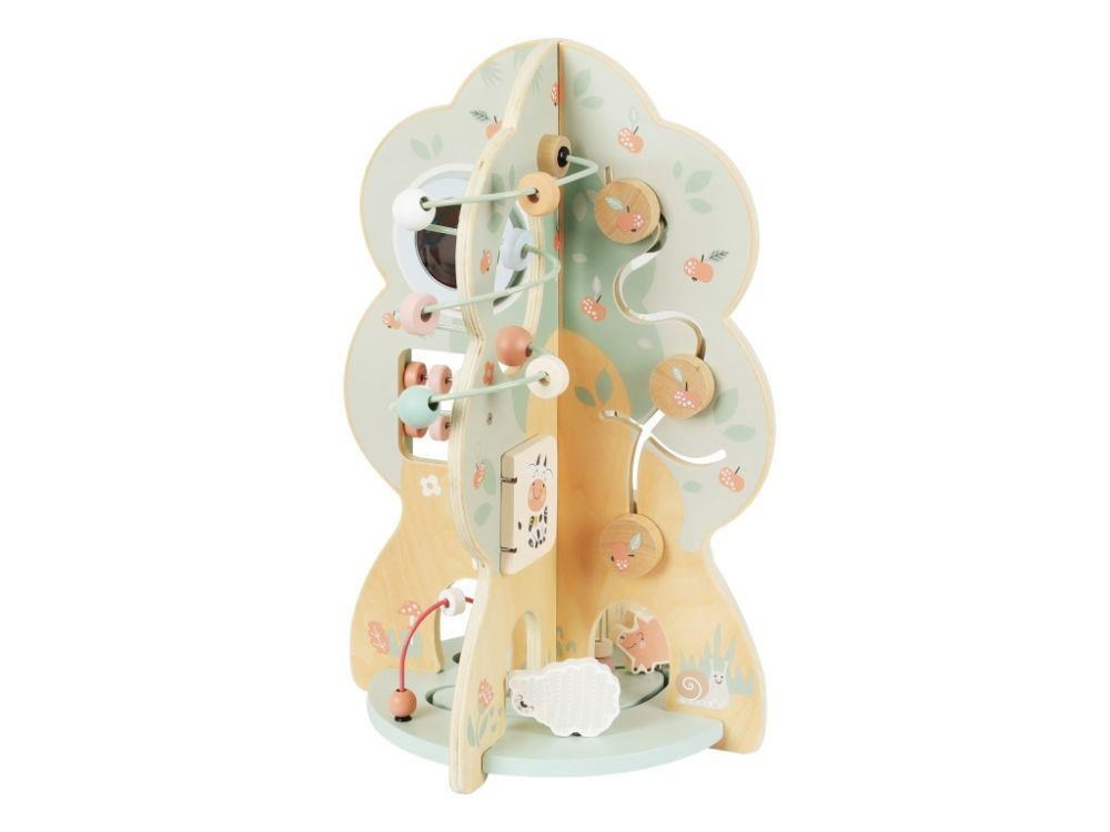 Activity board v podobě stromu zavede holčičky i chlapce na farmu, kde si pohrají s hracími prvky a zvířátky, která mohou vidět ve svém okolí, na venkově, na farmě. Příjemné pastelové barvy a motiv zvířátek dodávají hračce lákavý vzhled a lákají k pečlivému prozkoumání. Activity board strom vede děti k samostatnosti ve hře, v poznávání a učení se, zdokonaluje dětské dovednosti..