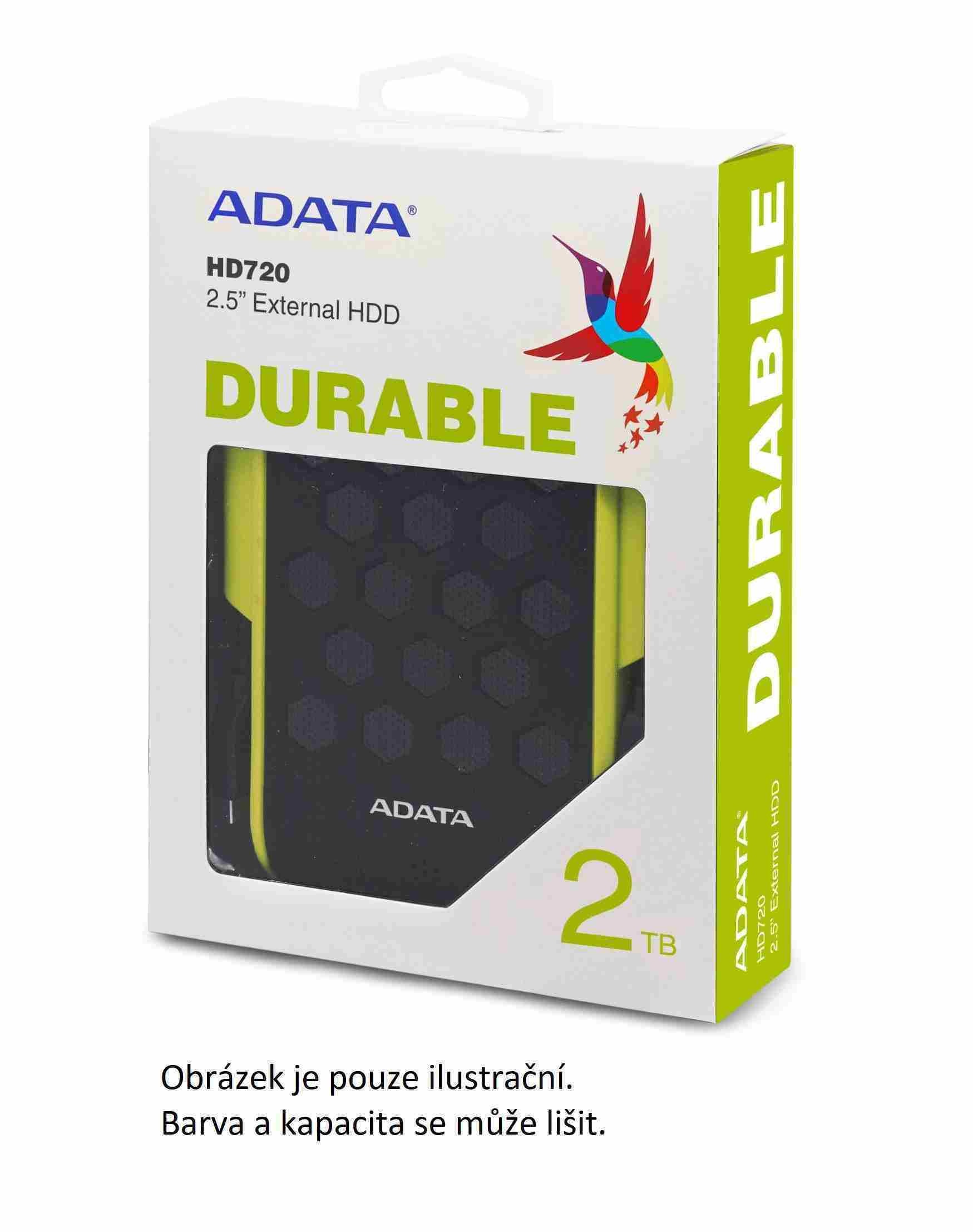 ADATA Externí HDD 2TB 2,5" USB 3.2, DashDrive™ Durable HD720, G-sensor, černý, (gumový, vodě/nárazu odolný)