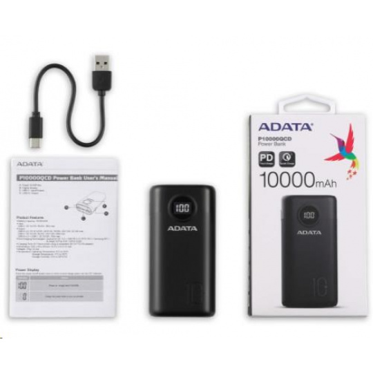 ADATA PowerBank AP10000 - externí baterie pro mobil/tablet 10000mAh, černá (37Wh) USB-C