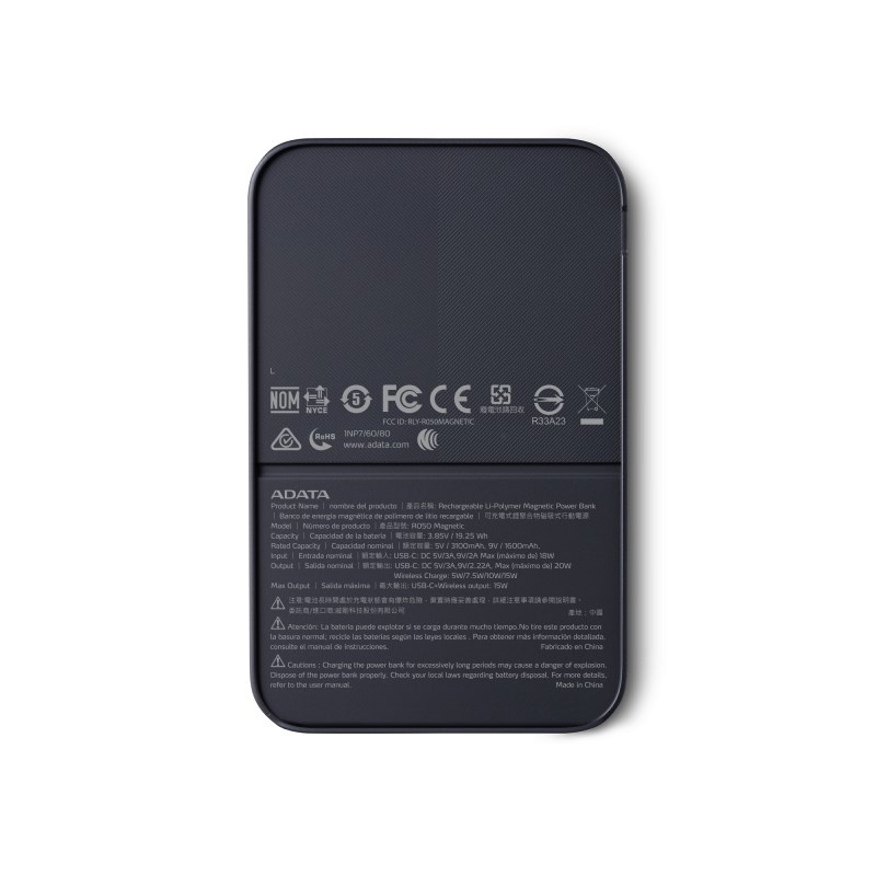 ADATA PowerBank R050 Magnetic, 5000mAh, 3.85A, černá (19.25Wh)