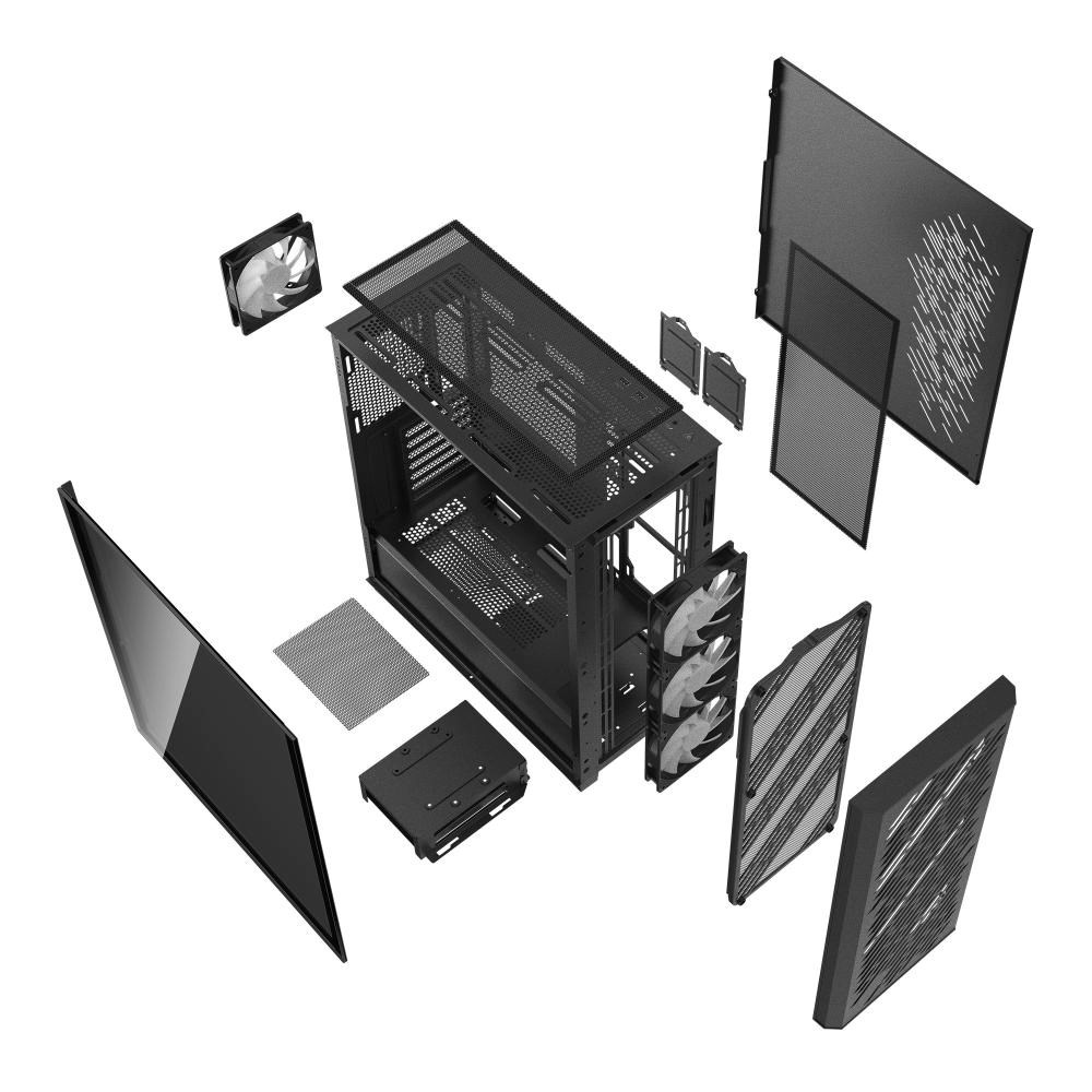 Navržen tak, aby posílil jak začátečníky, tak zkušené vylepšovače, VALOR AIR PRO je vlajkovou lodí řady VALOR AIR – poskytuje základní funkce bez kompromisů. S podporou základních desek E-ATX, grafických karet až do délky 400 mm, instalace 360mm radiátoru a až 9 pozic pro ventilátory je navržena pro velké nápady v čistém a přístupném uspořádání. Od odvážného designu proudění vzduchu ve stylu šikmých zářezů až po snadno přístupný přední panel, VALOR AIR PRO učiní vaši další stavbu plynulejší, chytřejší a schopnější od prvního kroku.