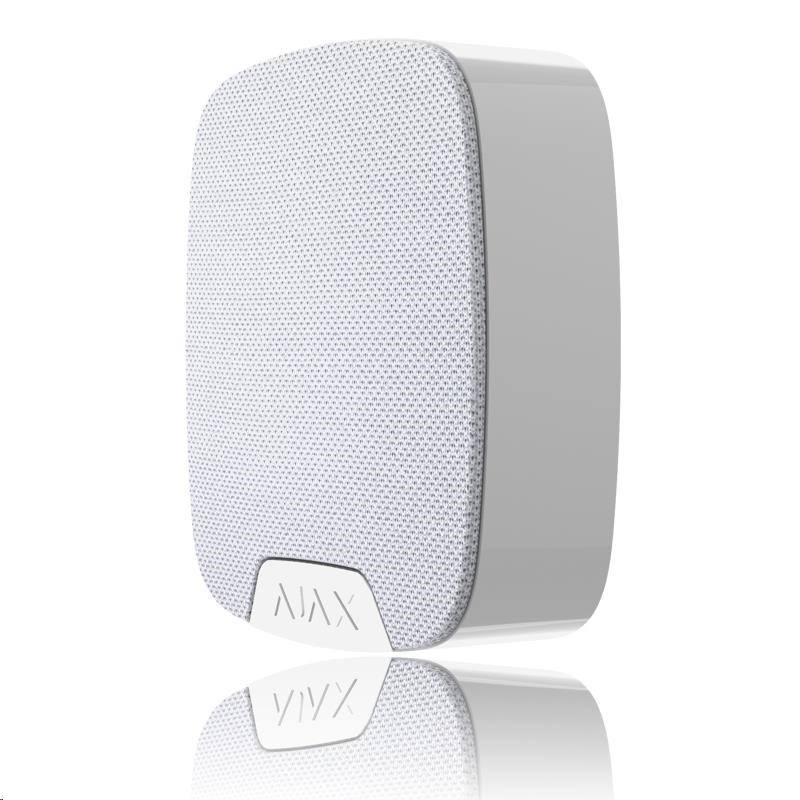 Ajax HomeSiren je bezdrátová siréna určená pro použití ve vnitřních prostorech. Intenzitu akustické signalizace lze libovolně nastavit v rozmezí 81 až 97 dB. Siréna navíc disponuje konektorem pro připojení externí LED signalizace. Díky unikátnímu protokolu Jeweller může komunikovat s Ajax Hubem až na vzdálenost 2 000 m v otevřeném prostoru.