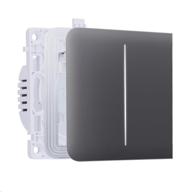 Kombinovaný vypínač se skládá ze 2, 3, 4 nebo 5 relé, dotykových tlačítek a rámečku s odpovídajícím počtem otvorů. Místo vypínače lze použít i inteligentní zásuvku Ajax