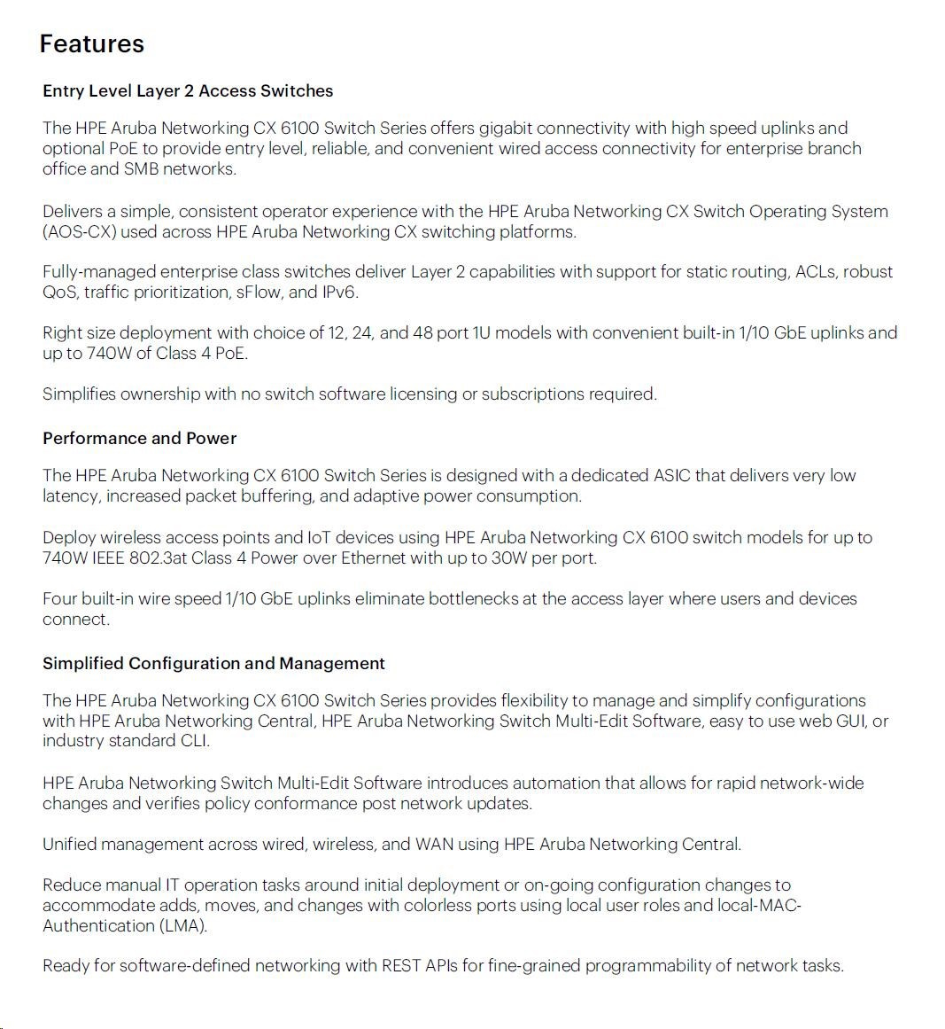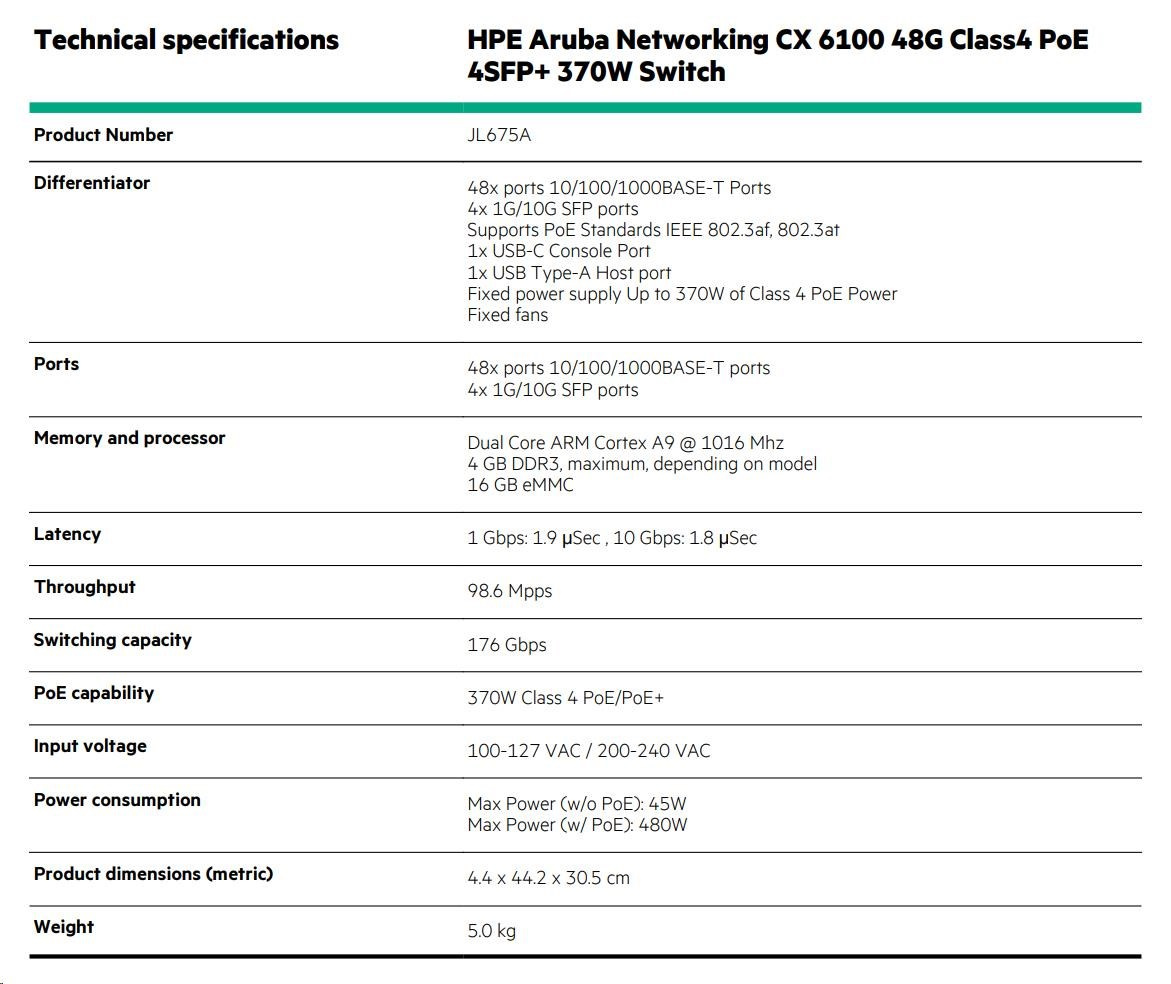 HPE Aruba CX 6100 Switch Specifications