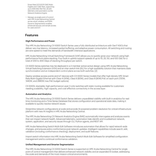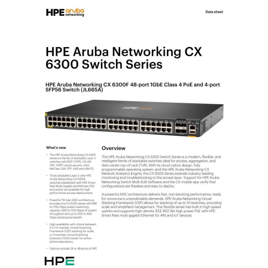 HPE Aruba Networking CX 6300F 48-port 1GbE Class 4 PoE and 4-port SFP56 Switch