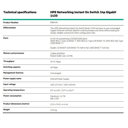HPE Networking Instant On Switch 24p Gigabit 1430 R8R49A