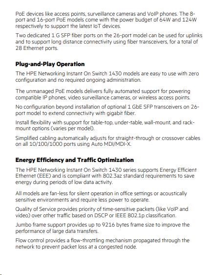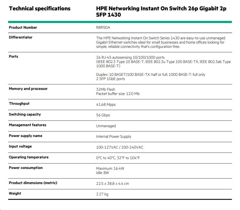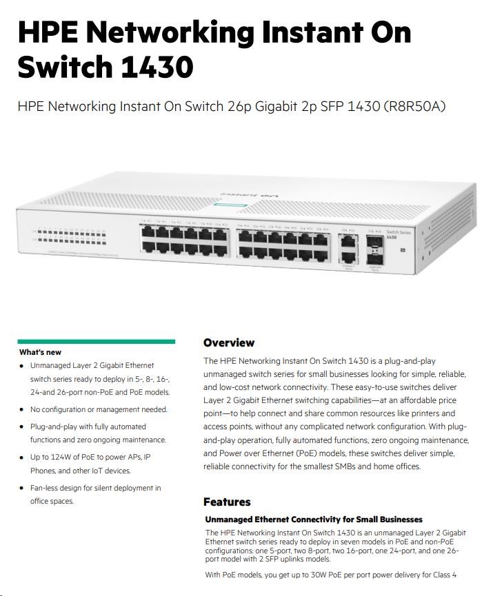 HPE Networking Instant On Switch 26p Gigabit 2p SFP 1430 R8R50A