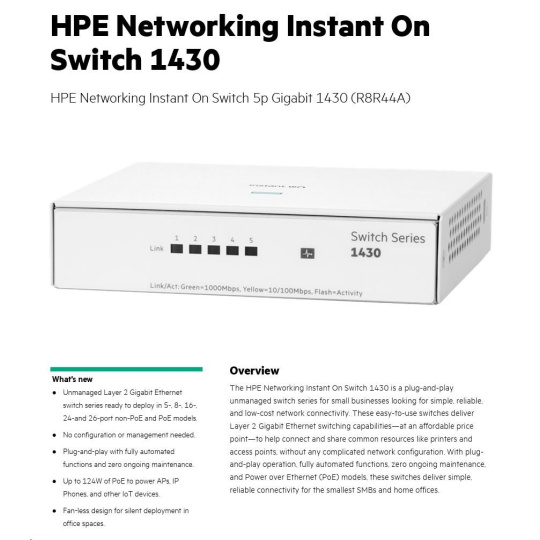 HPE Networking Instant On Switch 5p Gigabit 1430 (R8R44A)
