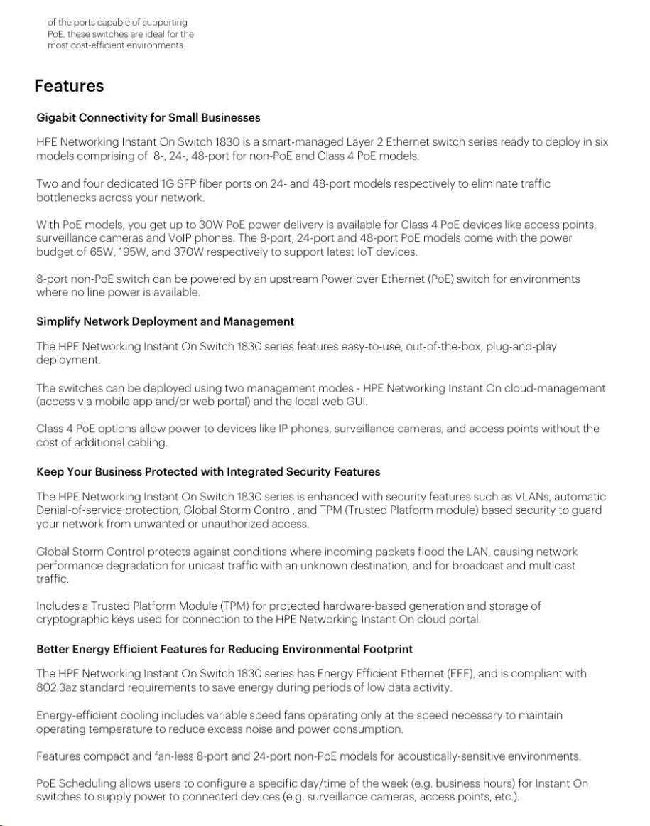 Aruba Instant On 1830 48G 24p Class4 PoE 4SFP 370W Switch