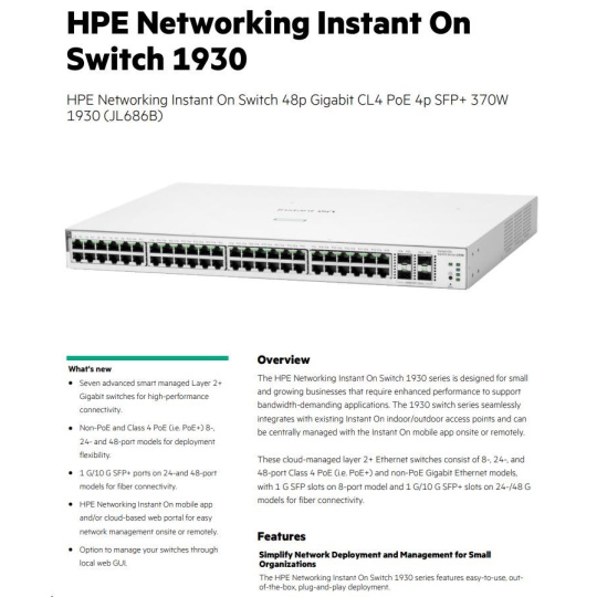 |   Aruba Instant On 1930 48G Class4 PoE 4SFP/SFP+ 370W Switch (JL686B)  |  ||