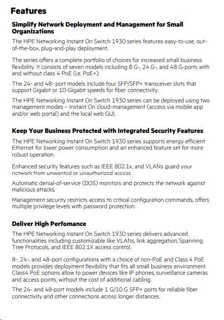 Fan-less design for 8-port models, 24- and 48-port non-PoE models, making the switches ideal for office deployments.