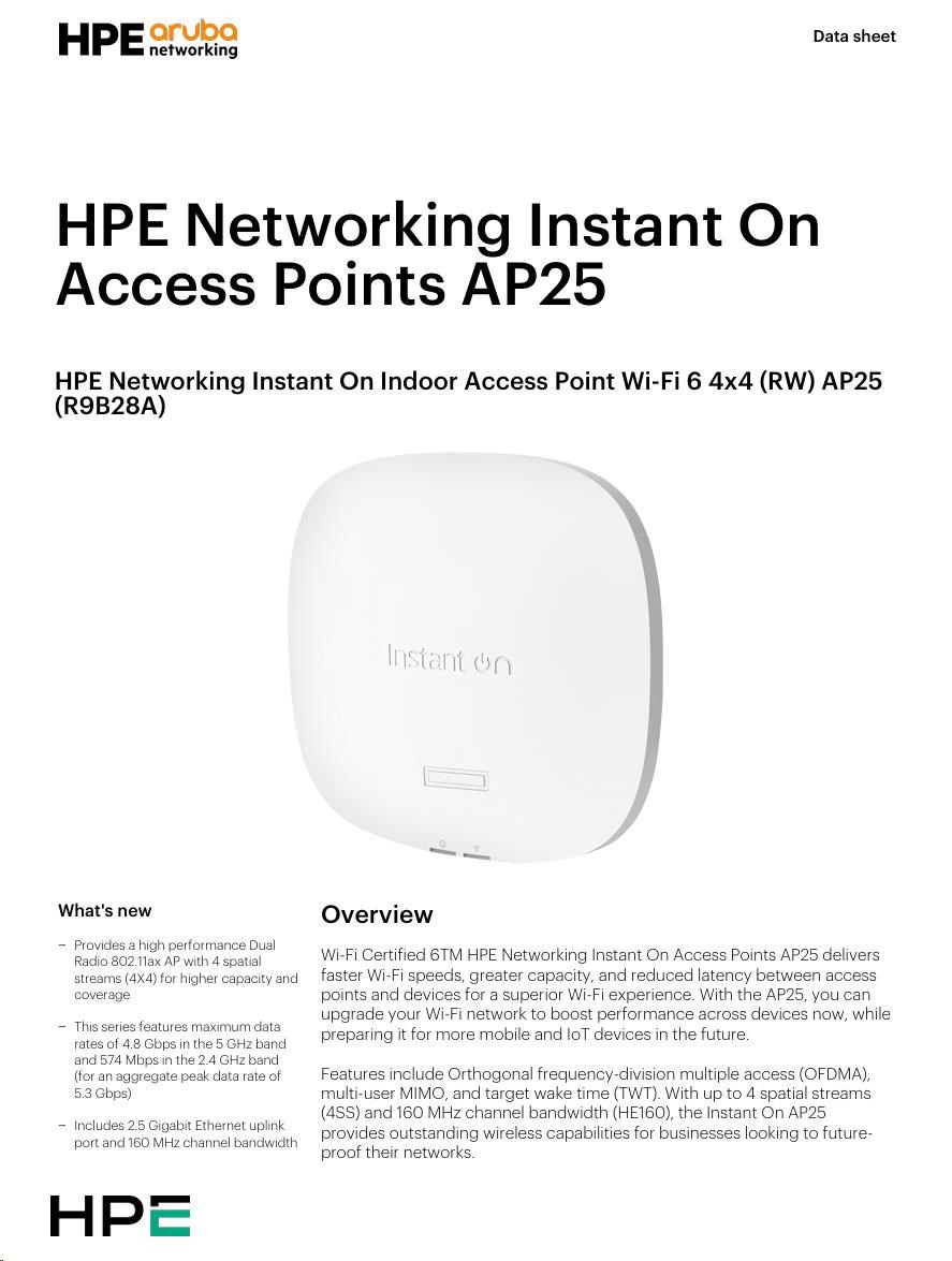 - HPE Networking Instant On Access Point (AP25)