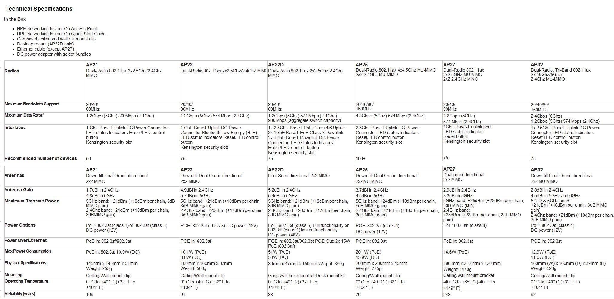 | Warranty | Instant On 2-year warranty |