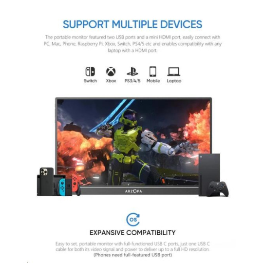 • 1× přenosný monitor ARZOPA Z1RC