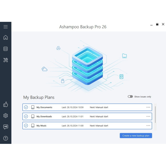 Ashampoo Backup Pro 26 vás zbaví strachu z virů, ransomwaru a hardwarových chyb! Vyzkoušejte snadno použitelné dobře navržené, ale výkonné zálohovací řešení. Nový Ashampoo Backup Pro vám nabízí všechny možné možnosti ukládání: Zálohujte jednotlivé soubory nebo celé diskové oddíly na místní disky nebo k poskytovatelům online úložišť. Zálohovací software už nemůže být jednodušší. Stačí připojit úložné zařízení a můžete začít! Program je navíc nenáročný na zdroje, nepřekáží vám a všechnu těžkou práci vykonává na pozadí. Obnovení záloh je velmi snadné! Ashampoo Backup Pro je dokonce dodáván se spouštěcím záchranným systémem pro obnovení systému v případě jeho většího selhání!
