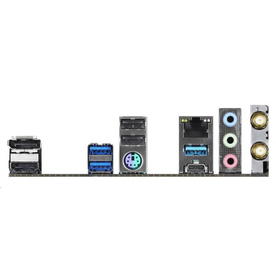 | Rear panel I/O | - 2 x Antenna Ports - 1 x PS/2 Mouse/Keyboard Port - 1 x HDMI Port - 1 x DisplayPort 1.4 - 2 x USB 2.0 Ports (Supports ESD Protection) - 3 x USB 3.2 Gen1 Type-A Ports (Supports ESD Protection) - 1 x USB 3.2 Gen1 Type-C Port (Supports ESD Protection) - 1 x RJ-45 LAN Port with LED (ACT/LINK LED and SPEED LED) - HD Audio Jacks: Line in / Front Speaker / Microphone |