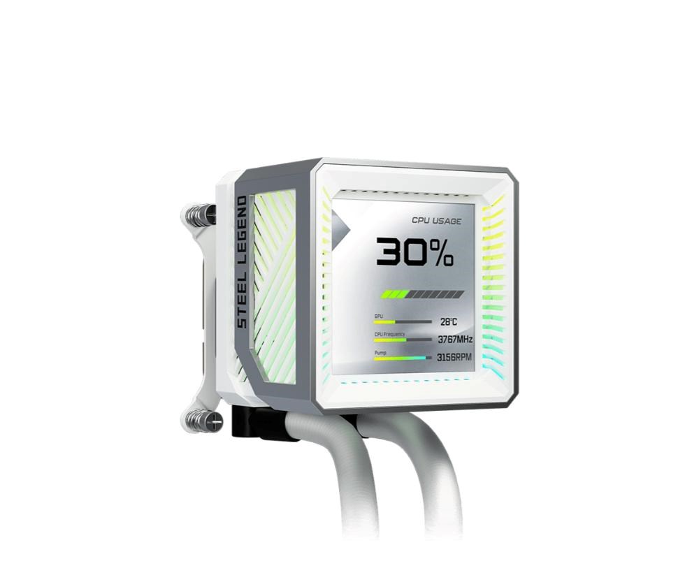 Vysoce výkonné AIO chlazení s 360mm radiátorem a integrovaným 3" LCD displejem pro monitoring systému nebo vlastní grafiku. Je osazeno prémiovými ventilátory s LCP lopatkami a průmyslovými kuličkovými ložisky pro maximální tlak a životnost. Kombinuje robustní konstrukci řady Steel Legend s tichým 3fázovým čerpadlem a plnou podporou nejnovějších socketů Intel i AMD.