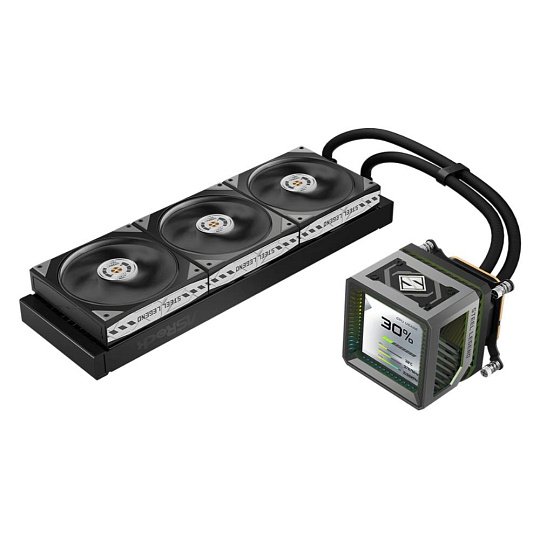Vysoce výkonné AIO chlazení s 360mm radiátorem a integrovaným 3" LCD displejem pro monitoring systému nebo vlastní grafiku. Je osazeno prémiovými ventilátory s LCP lopatkami a průmyslovými kuličkovými ložisky pro maximální tlak a životnost. Kombinuje robustní konstrukci řady Steel Legend s tichým 3fázovým čerpadlem a plnou podporou nejnovějších socketů Intel i AMD.