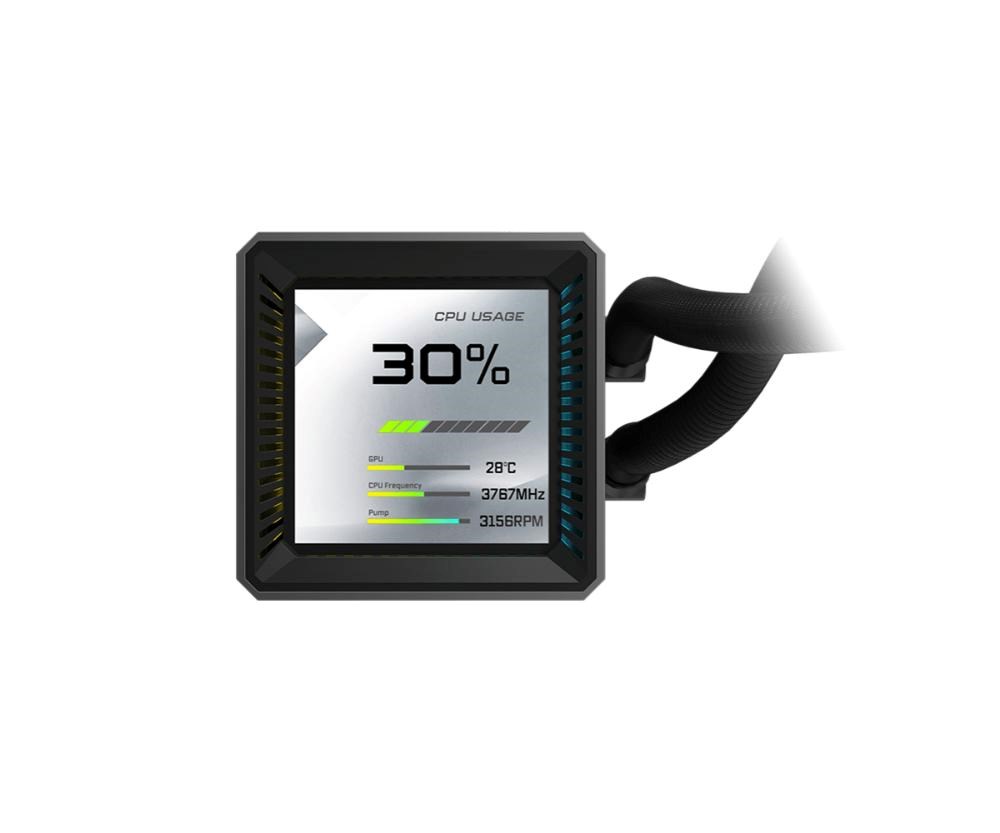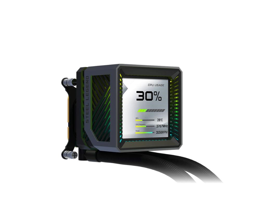 Vysoce výkonné AIO chlazení s 360mm radiátorem a integrovaným 3" LCD displejem pro monitoring systému nebo vlastní grafiku. Je osazeno prémiovými ventilátory s LCP lopatkami a průmyslovými kuličkovými ložisky pro maximální tlak a životnost. Kombinuje robustní konstrukci řady Steel Legend s tichým 3fázovým čerpadlem a plnou podporou nejnovějších socketů Intel i AMD.
