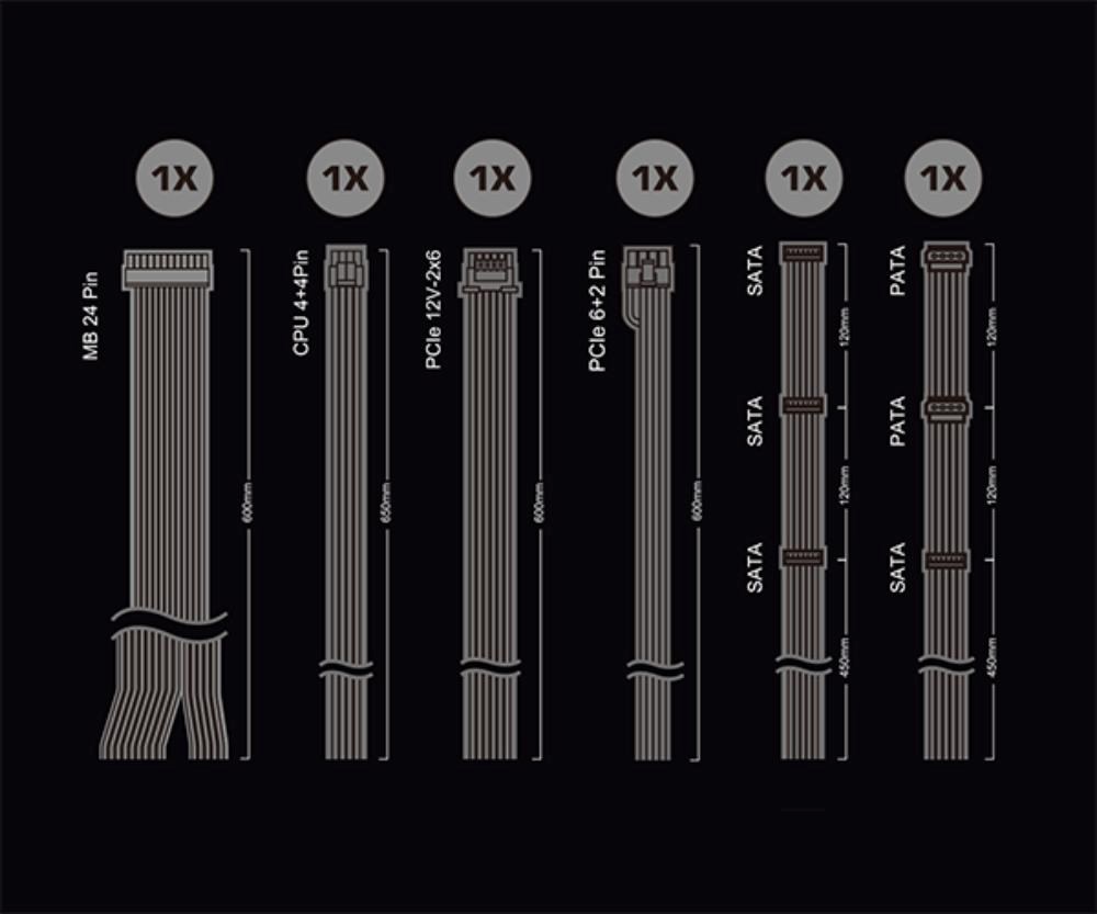 | ATX 20+4pin Konektor | 1x / 1x (600mm) |