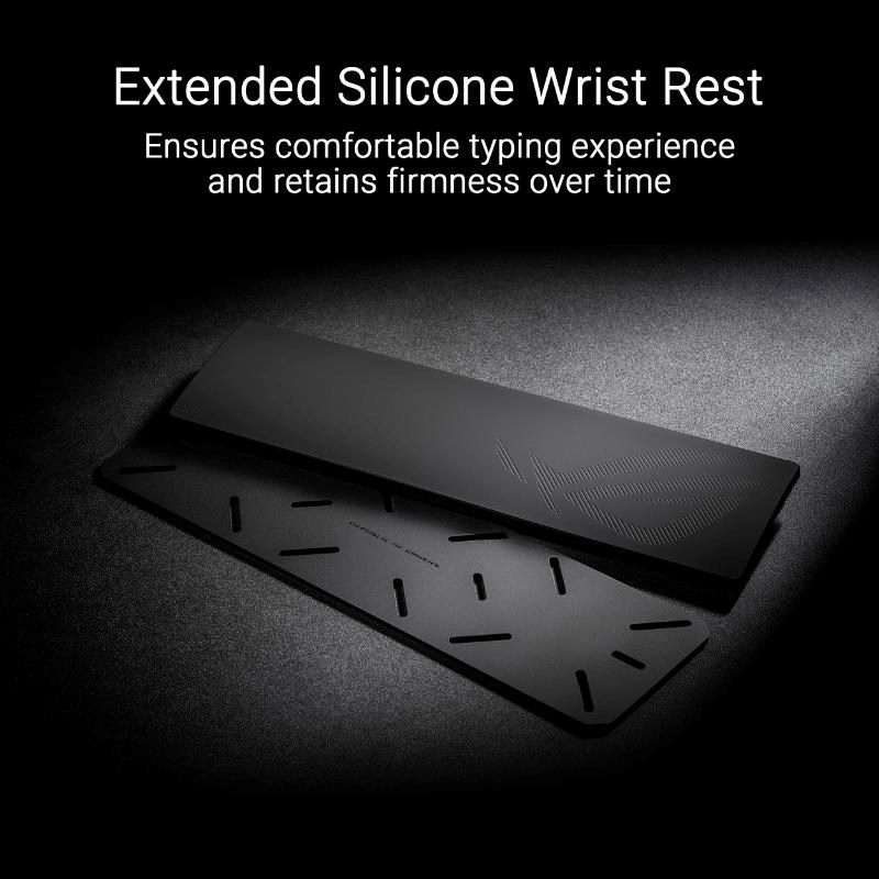 ROG Azoth Extreme je přizpůsobitelná 75% herní klávesnice s prémiovým šasi z hliníkové slitiny a kovovým rámem. Vyznačuje se rychlostí hlášení 8000 Hz s ROG Polling Rate Booster a více než 1600 hodin výdrže baterie v bezdrátovém režimu ROG SpeedNova 2,4 GHz. Vylepšený OLED dotykový displej a třícestný knoflík umožňují monitorování systému a rychlé nastavení. Polohovací deska z uhlíkových vláken zajišťuje ostrý zvuk při psaní, zatímco tři tlumicí vrstvy absorbují vibrace. Nastavitelný držák těsnění s pádlovým spínačem nabízí dvě možnosti psaní.