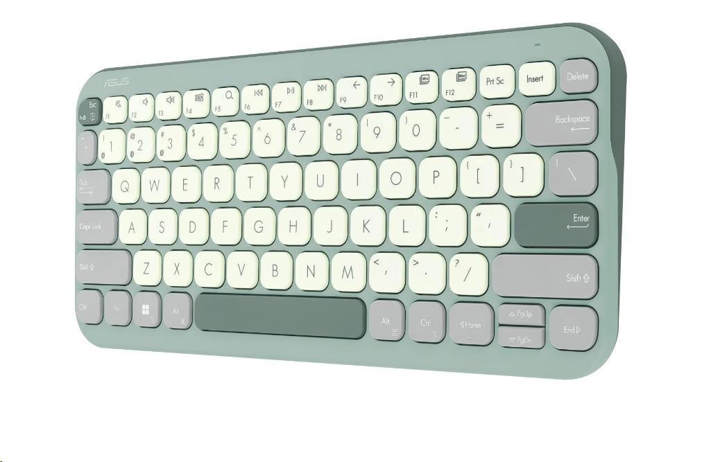 Klávesnice ASUS Marshmallow KW100 je kompaktní, ultratenká bezdrátová klávesnice s minimalistickým designem, vhodná pro domácnost nebo kancelář. Kompatibilní s operačními systémy Windows, ChromeOS, MacOS, iOS a iPadOS, nabízí všestrannost pro každodenní používání. Dostupná v barevných provedeních Oat Milk a Green Tea Latte. Klávesy Mezerník, Enter a Esc mají tmavší odstín pro lepší viditelnost, což přidává klávesnici elegantní a mladistvý vzhled.