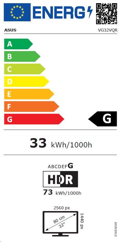 ASUS LCD 31.5" VG32VQR 2560x1440 GAMING CURVED 165Hz 400cd DP HDMI PIVOT DisplayPort cable + HDMI cable