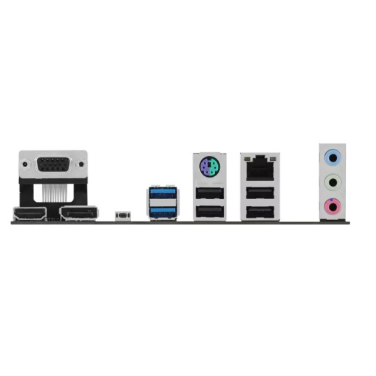 2 x USB 3.2 Gen 1 (5G) ports (2 x Type-A) 4 x USB 2.0 ports (4 x Type-A) 1 x DisplayPort 1 x VGA port 1 x HDMI™ port 1 x Realtek 1Gb Ethernet port 3 x Audio jacks  1 x BIOS FlashBack™ button 1 x PS/2 Keyboard/Mouse combo port