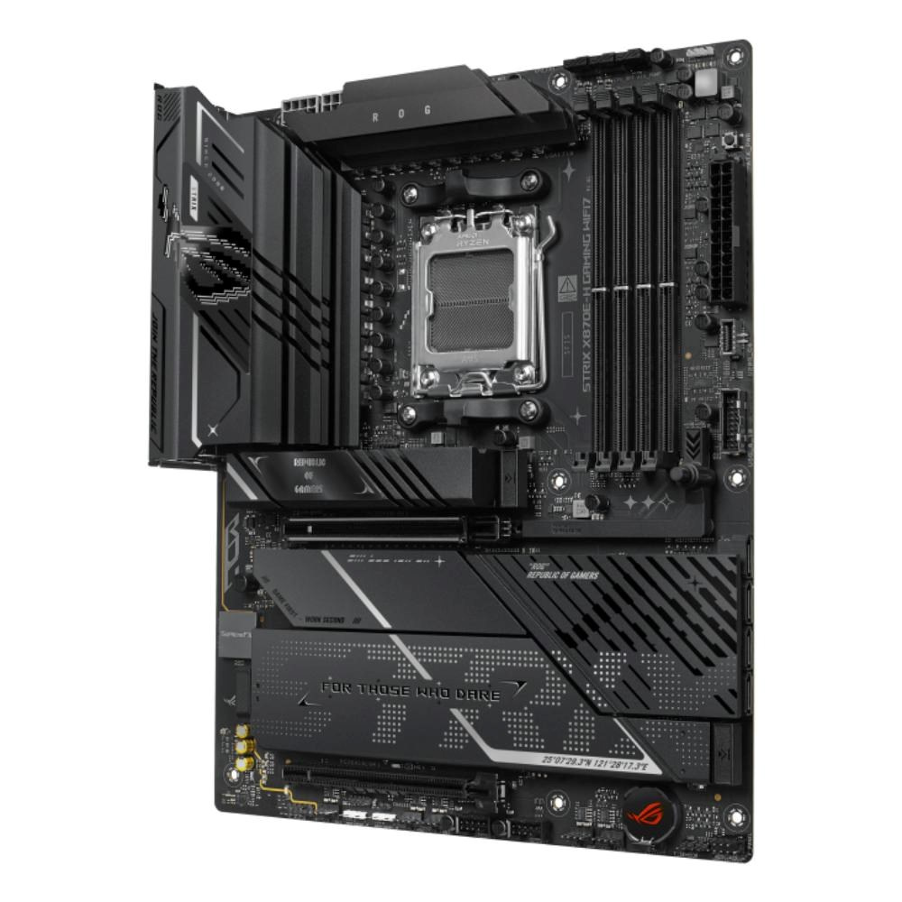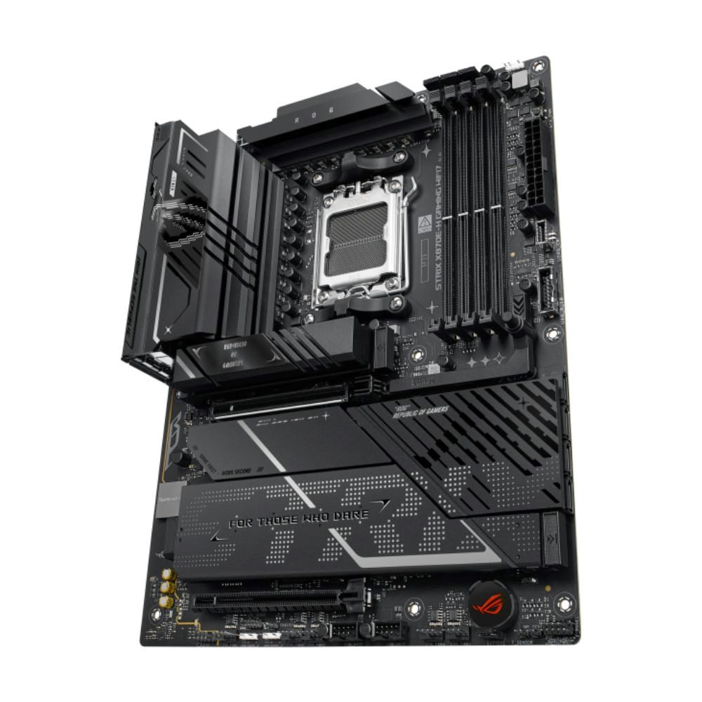 Transform your gaming experience with the ROG STRIX X870E-H GAMING WIFI7 motherboard. Engineered to dominate with AMD Ryzen™ 9000 Series Desktop Processors, this ATX powerhouse features cutting-edge power design and AI-enhanced solutions. With PCIe 5.0 x16 slots, dual USB4® Type-C ports, and WiFi 7, it delivers advanced connectivity. DIY-friendly features like M.2 Q-Release on all four M.2 slots and PCIe Slot Q-Release make building and upgrades effortless. Unleash your system's full potential with the ROG STRIX X870E-H GAMING WIFI7.