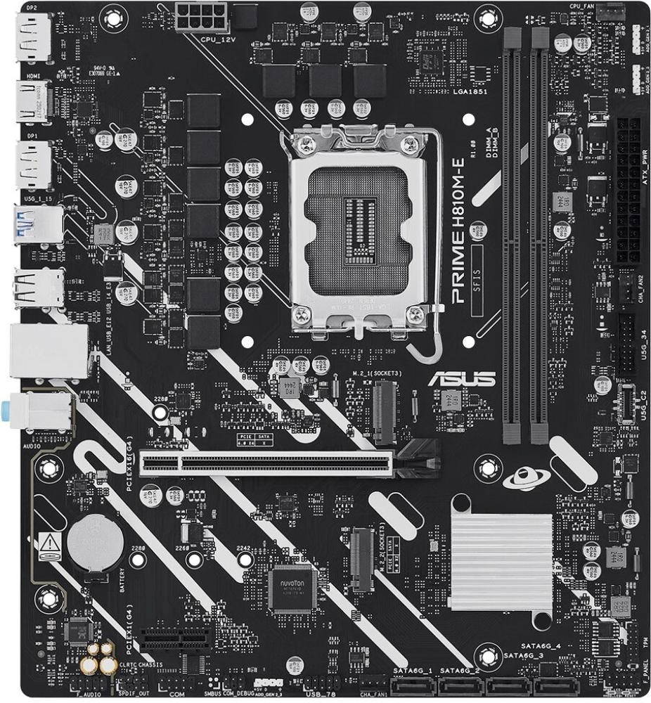 The ASUS PRIME H810M-E-CSM motherboard is designed to deliver stable performance and essential features for everyday computing. Built for Intel® Core™ processors on the LGA1851 socket, it offers efficient power delivery, comprehensive connectivity, and proven ASUS reliability — making it an ideal choice for business, home, or office PCs.