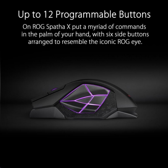 - Up to 12 Programmable Buttons - The 12 programmable buttons on ROG Spatha X put a myriad of commands in the palm of your hand, with six side buttons arranged to resemble the iconic ROG eye. The placement of each button has been carefully considered so they’re within reach, and all have been designed to provide a tactile click feel for intuitive, responsive control.