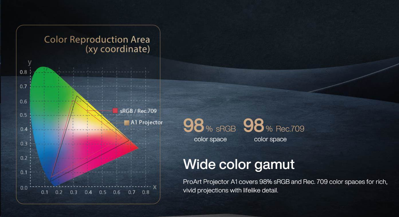Wide color gamut: Covers 98% sRGB and REC.709 color spaces