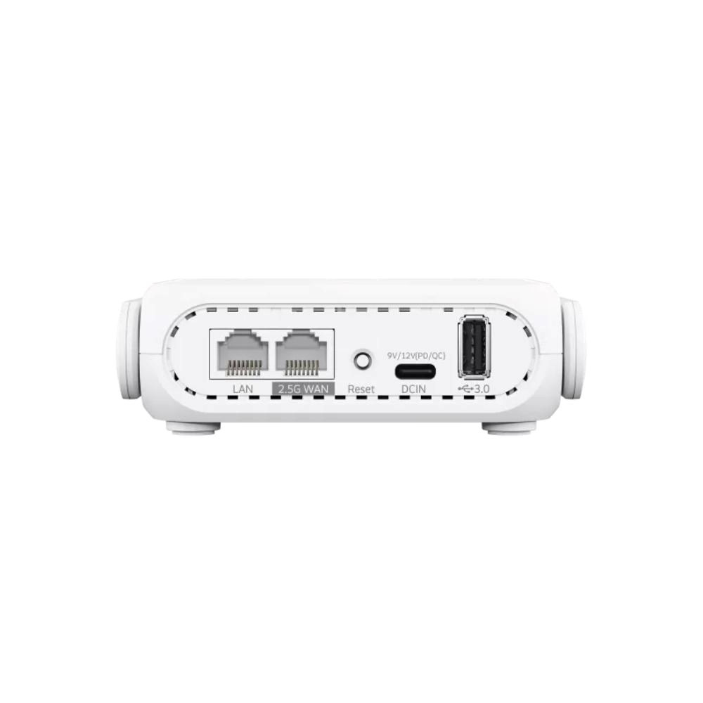 Dvoupásmový cestovní router WiFi 7 (802.11be) s rychlostí až 3600 Mb/s, podporou 4G a 5G mobilního sdílení připojení, režimem veřejné WiFi (WISP), 2.5G portem, funkcí Guest Network Pro s SSID pro VPN, IoT zařízení a portál pro hosty, pokročilým zabezpečením sítě a napájením přes USB-C Power Delivery.