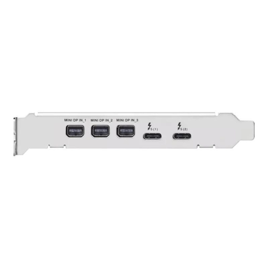 | Konektory | 2x USB-C (Až ThunderBolt 5) 3x Mini-DP 1x 6-pin PCIe napájecí konektor 1x USB 2.0 header 1x ThunderBolt header  |