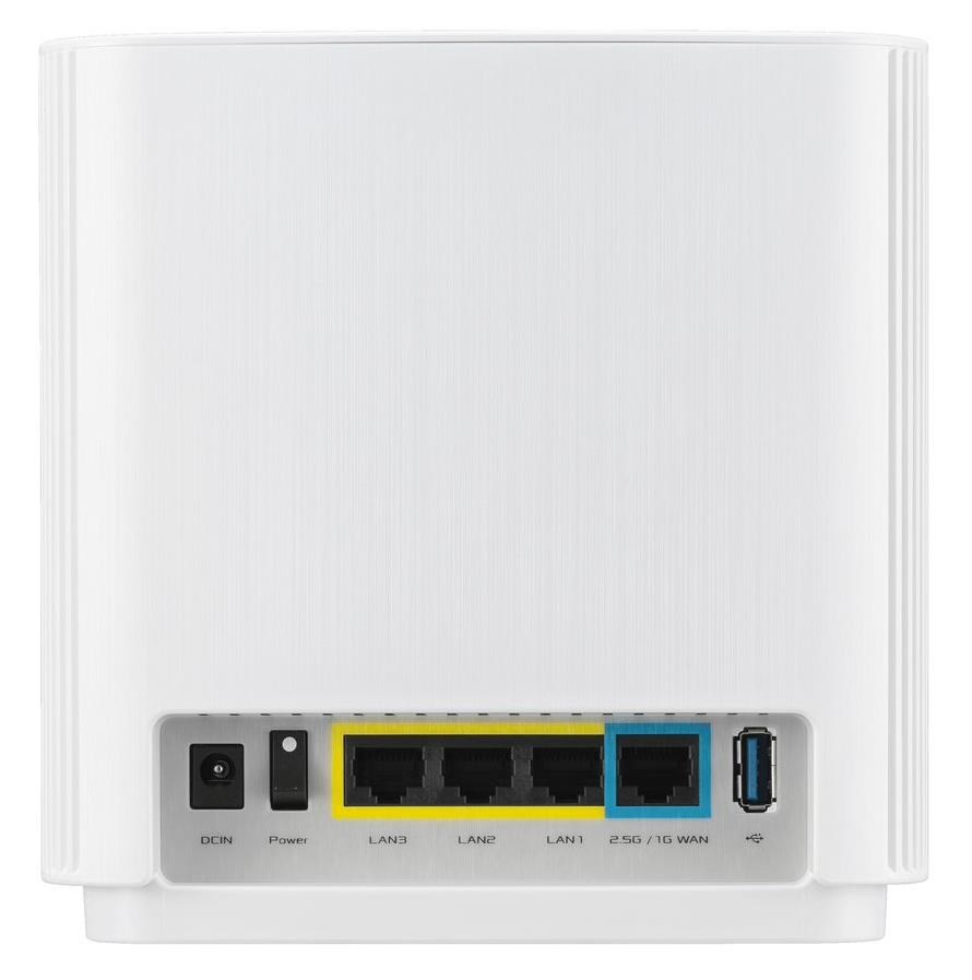 Wireless AX7800 Tri Band 2.5Gigabit Router WiFi 6 (802.11ax), 2402Mbps (5G-1) Wi-Fi 6 (802.11ax), 4804Mbps (5GHz-2) Wi-Fi 6 (802.11ax), 574bps (2.4GHz) Whole home mesh wifi system for large and multi-story homes Supports flexible SSID setting, wired inter-router connections AiProtection Pro network security powered by Trend Micro Ethernet 2.5Gigabits WAN x 1, LAN x 3 USB 3.1 Gen 1 x 1.
