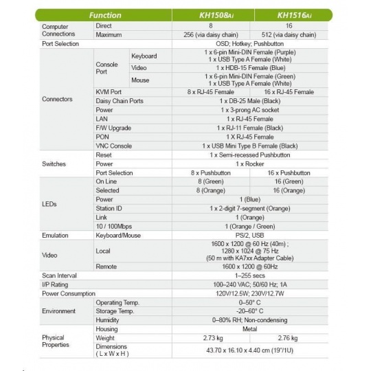 ATEN přepínač KH-1516AI 16-port OverNet Cat5 KVM PS/2+USB, OSD, rack, SUN, PON, VNC