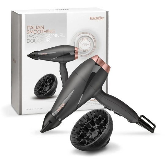 BaByliss 6709DE fén, 2100 W, 2 rychlosti, 3 teploty, studený vzduch, ionizátor, difuzér, černý