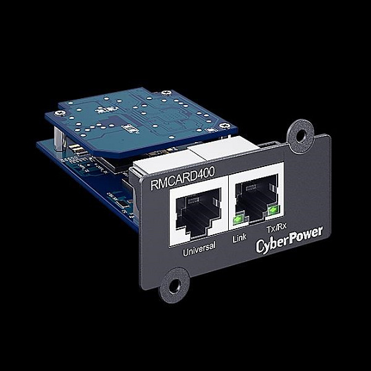 CyberPower RMCARD400 je volitelným doplňkem pro správu konkrétní UPS řady CyberPower. Vložením karty do síťového slotu SNMP / HTTP na UPS mohou uživatelé vzdáleně monitorovat a řídit zařízení v kanceláři, serverovně nebo datovém centru prostřednictvím standardního webových prohlížečů, systému správy sítě (NMS) nebo rozhraní příkazového řádku (SSH a Telnet) v jejich síti. Mohou také provádět vzdálenou správu včetně plánovaných vypnutí, spuštění a restartování. Když dojde k potížím s napájením, administrátoři budou okamžitě informováni prostřednictvím e-mailu, SNMP a SMS zpráv. Použitím softwaru pro automatické vypínání zůstávají servery a pracovní stanice chráněny před ztrátou dat v důsledku výpadku napájení. Záznam událostí sleduje provozní historii UPS. Díky možnosti výměny baterií za provozu může systém zůstat zapnutý, i když servisní personál provádí údržbu nebo výměnu na místě. Pomocí vícejazyčného rozhraní mohou uživatelé zvolit svůj preferovaný jazyk pro snadnou správu.