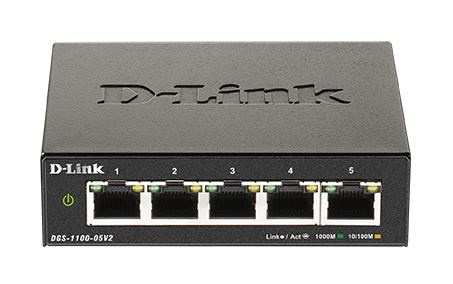 BAZAR - D-Link DGS-1100-05V2 5-port Gigabit Smart Managed switch, fanless - Poškozený obal (Komplet)