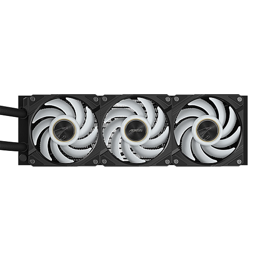 - Vodní blok a ventilátor mají gradientní osvětlení a osvětlení ventilátoru ARGB lze synchronizovat s ostatními zařízeními AORUS prostřednictvím GCC (GIGABYTE Control Center).