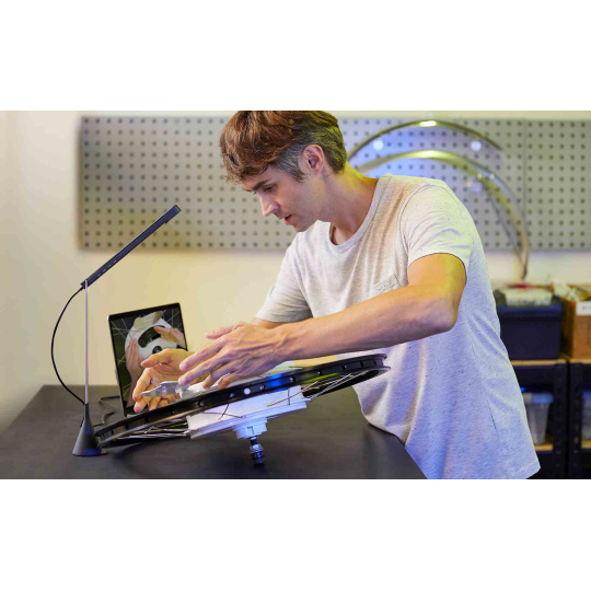 Lze jej také nasměrovat dolů pod úhlem 45°, abyste mohli předvádět produkty, výukové programy nebo zobrazovat cokoli, co potřebujete během online spolupráce.