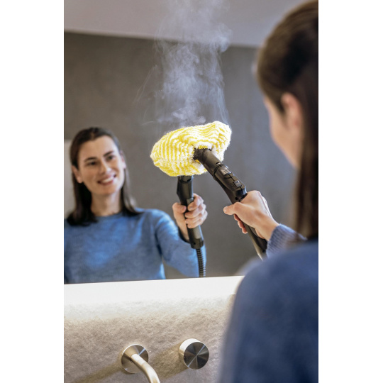 Žehlička SC 5 EasyFix nejenže skvěle padne do oka, ale také slibuje plný čisticí výkon: Vynikající tlak páry 4,2 baru z ní dělá nejlepší parní čistič ve své třídě. Čtyřstupňová regulace páry umožňuje dle potřeby nastavit průtok páry. Důkladné čištění parním čističem Kärcher odstraní 99,999 % virů* a 99,99 % všech běžných bakterií v domácnosti** z typických tvrdých povrchů v domácnosti. A díky široké škále dostupného příslušenství dokáže dokonale vyčistit hladké povrchy, digestoře, rohy a mezery. Obzvláště praktická napařovací žehlička, která je součástí dodávky, urychluje žehlení o 50 %. Funkce VapoHydro navíc umožňuje přidání horké vody a snadnější odstranění a smytí odolných nečistot. Flexibilní podlahová hubice EasyFix se vyznačuje působivou a účinnou lamelovou technologií. Pomocí suchého zipu lze podlahový hadřík pohodlně připevnit k podlahové hubici, aniž by musel přijít do kontaktu s nečistotami. Nádržku na vodu lze vyjmout a trvale doplnit. Dodává se také s integrovaným úložným prostorem pro kabel, úložným prostorem pro příslušenství a parkovací polohou pro podlahovou hubici.